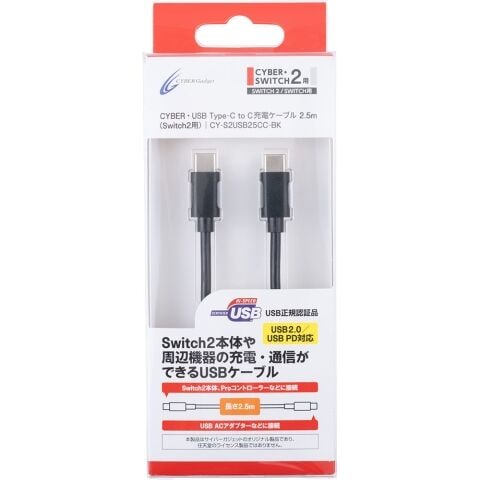 サイバーガジェット USB Type-C to C充電ケーブル 2.5m CY-S2USB25CC-BK 【返品種別B】