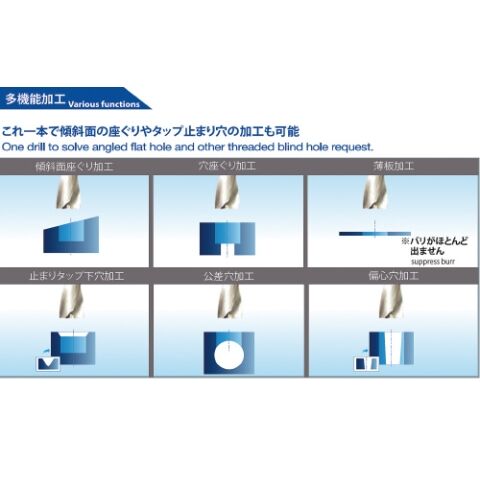 ◆これ一本で傾斜面の座ぐりやタップ止まり穴の加工も可能。