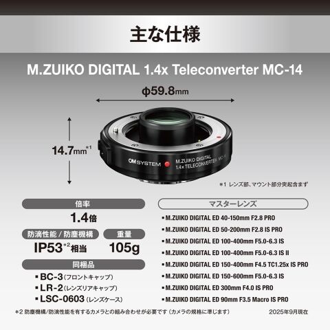 ※OM SYSTEM(OLYMPUS)製防滴ボディと組み合わせたときに性能を発揮します。/防塵機構 - 倍率:1.4倍
