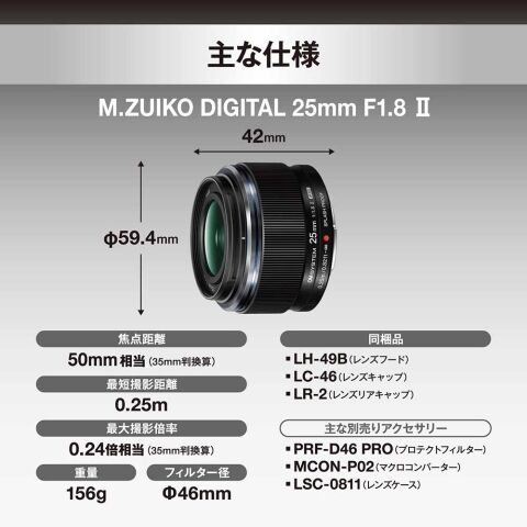 OM SYSTEM M.ZUIKO DIGITAL 25mm F1.8 II ※マイクロフォーサーズ用レンズ 25MMF1.8II 【返品種別A】
