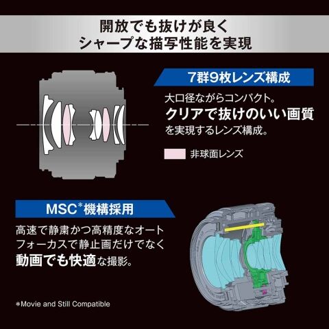 フォーカス群にはMSC(Movie and still compatible)機構を採用しています。