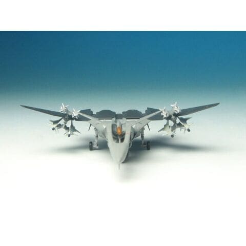 全長:132mm、全幅:102mm コクピットの代わりに機首に装備されたブレインパーツやフェアリングもリアルに再現 武装は翼上にAAM-III x 4発、翼下にAAM-V x 4発を装備可能 飛行機モデル的ディテールでリアルに機体を表現 主翼は簡単な工作で、折りたたんだ状態も再現可能 パーツ点数約70点 イタリアカルトグラフ製の最高級シルクスクリーンデカール付属
