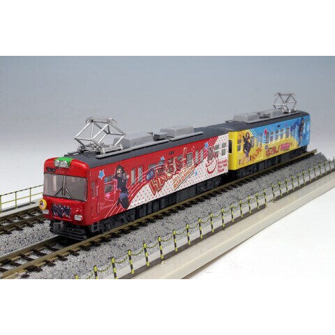 主人公『平沢唯』がラッピングされた赤と白のカラーリングの613号車と、他の軽音部メンバー4人『秋山 澪』『田井中 律』『琴吹 紬』『中野 梓』がラッピングされたピンクと緑、青と黄色のカラーリングの614号車の2両セット。