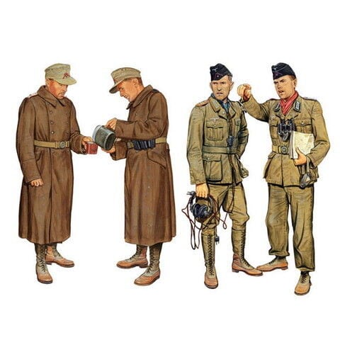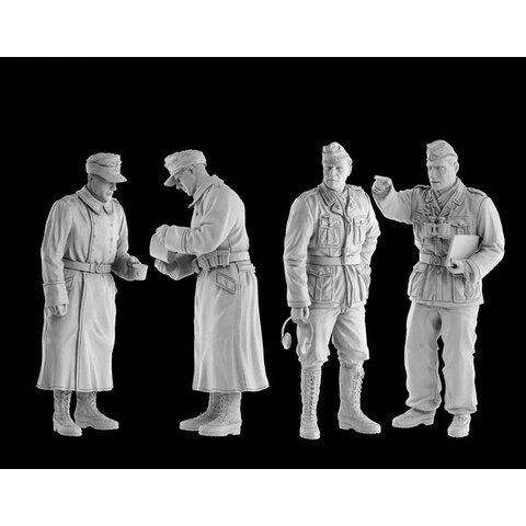 ドイツ軍アフリカ軍団の戦車兵と砲兵を各2体ずつ、計4体を再現 歩兵は夜の冷え込みが厳しいリビアの気候に合わせたコート姿を再現 戦車兵2体も熱帯地仕様のユニフォーム姿。足元はアンクルブーツとトロピカルブーツをそれぞれ着用 ヘッドセットなどの装備も緻密にモデル化
