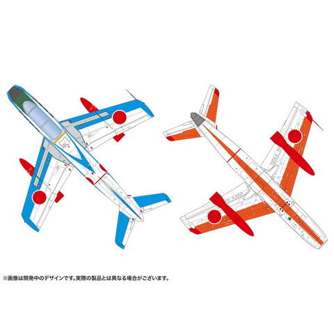 往年のF-86Fブルーインパルスを彷彿とさせるブルーとオレンジレッドのストライプは、T-1練習機のクリーンなスタイルにもよく似合います。