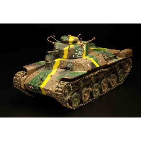 昭和12年(1937年)に完成。低くコンパクトにデザインされた車体形状や左右非対称の形状に鉢巻式アンテナを装備した砲塔、エンジンには空冷のディーゼルエンジンを搭載し、足回りには特徴あるシーソー式サスペンションを採用するなど、独自のメカニズムが盛り込まれた戦車でした。