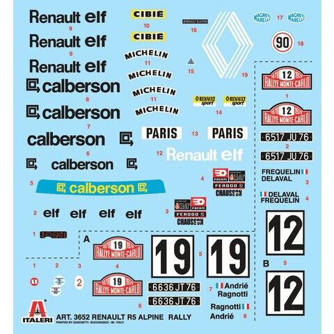 1978年のモンテカルロラリーで2位、3位に入賞したルノーR5アルピーヌを1/24スケールで再現したプラスチックモデル組み立てキットです。