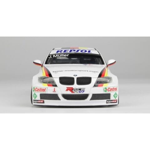 1/24スケールでBMW 320si E90のツーリングカーレース仕様を再現 ボディスタイルをはじめ、シャーシ下面やインテリアなど、リアルにモデル化 室内のロールバーなども詳細に再現 2008年の世界ツーリングカー選手権のブランズハッチでのレースの優勝マシンのマーキングをデカールで再現