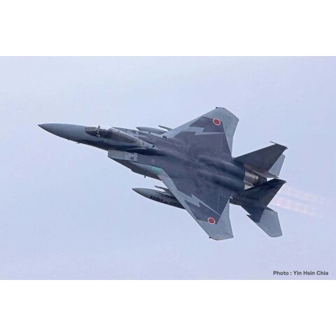 主力機F-15Jイーグルは1974年に実戦配備が始まったアメリカ空軍のF-15Cをベースに航空自衛隊の独自装備を施した機体で、独自の戦術電子戦システム、J/TEWSや同じく独自のデータリンクシステムなどを搭載しています。