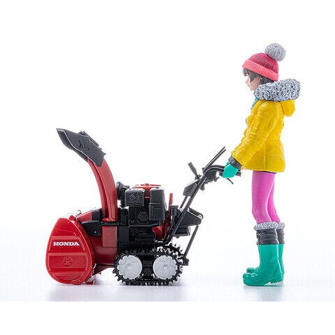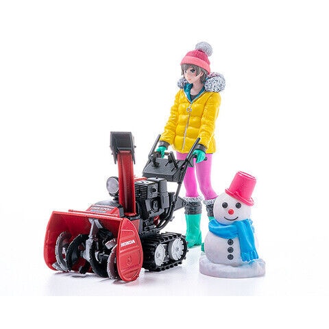 本田技研工業株式会社より発売中の小型除雪機「HSS1170n(JX)」と、同スケールで立体化した山下しゅんや氏によるオリジナルキャラクター「みのり」が登場。