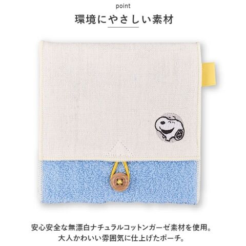 安心安全な無漂白ナチュラルコットンガーゼ素材を使用。大人かわいい雰囲気に仕上げたポーチ。