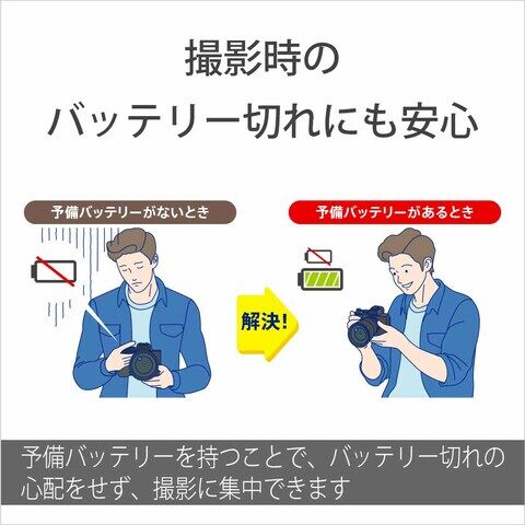 「NP-BX1」を予備で持つことで、撮影中のバッテリー切れにも安心です。