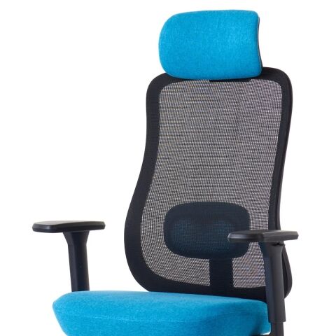 座面と同じファブリック生地を使用した大型ヘッドレストは6段階高さ調整が可能です。
