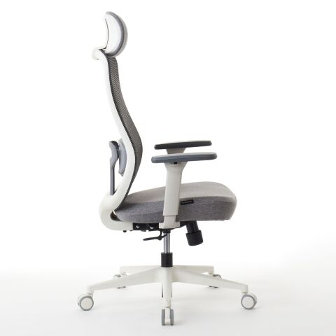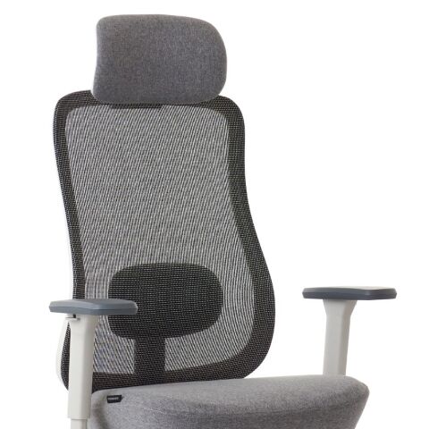 座面と同じファブリック生地を使用した大型ヘッドレストは6段階高さ調整が可能です。