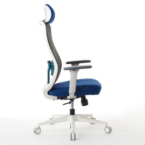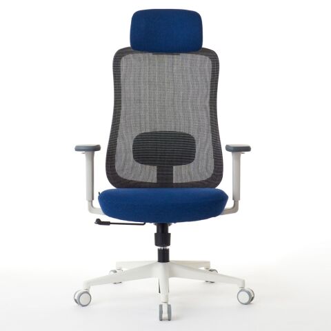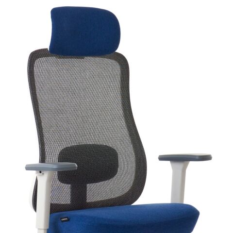 座面と同じファブリック生地を使用した大型ヘッドレストは6段階高さ調整が可能です。