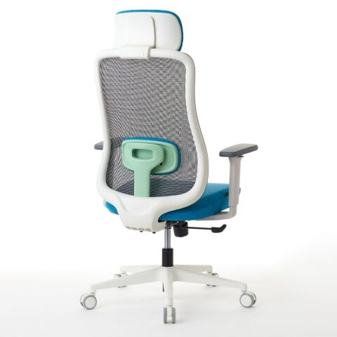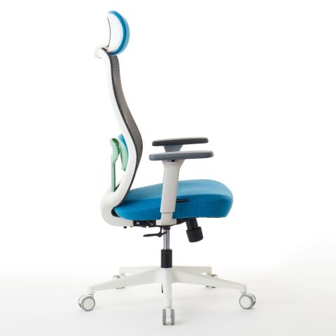 座面と同じファブリック生地を使用した大型ヘッドレストは6段階高さ調整が可能です。