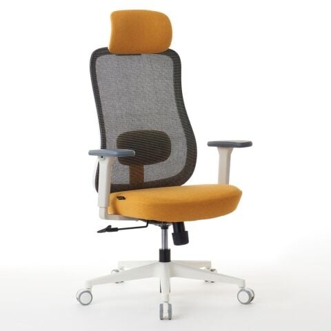 座面と同じファブリック生地を使用した大型ヘッドレストは6段階高さ調整が可能です。