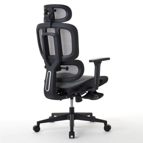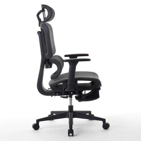 座面下に収納する省スペースタイプのフットレスト付き。デスクワークの休憩時にロッキング機能と合わせてお使い頂けます。
