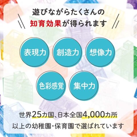 透明感のある7色のクリアカラーのブロックは、光を通すと色味が美しく変化します。