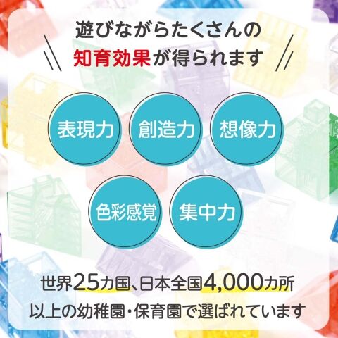 透明感のある7色のクリアカラーのブロックは、光を通すと色味が美しく変化します。