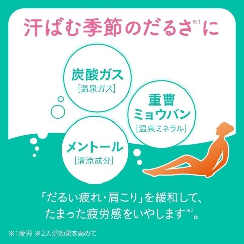 ◆温泉の効き成分で、入浴効果を高め血行促進。汗ばむ季節の症状を快適に緩和。