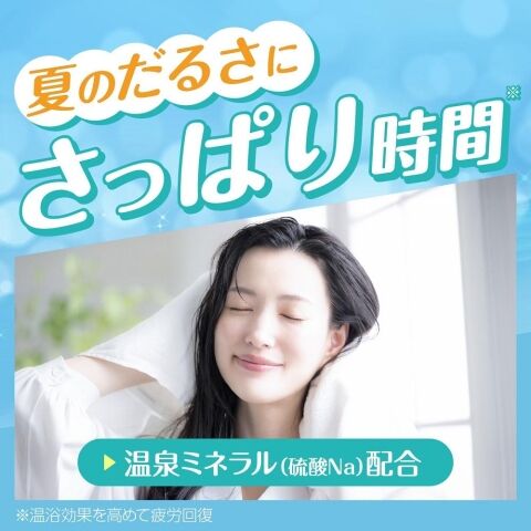 ◆温泉ミネラル成分(乾燥硫酸ナトリウム)配合。温浴効果を高めて、血行を促進、夏のだるい疲れや冷え症を緩和