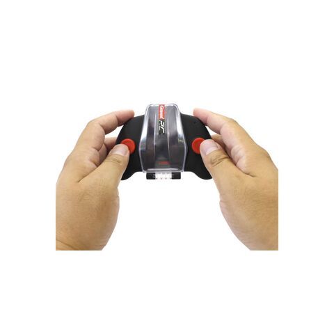 マシンは全長7cmのコンパクトなサイズなので、小さなスペースがあればどこでも楽しめます。 コントローラーで前後・左右のシンプルな操作ができる。周波数は2.4GHz仕様で、最大10台の同時走行が可能。 コントローラーにマシンを収納して1つにまとめておけば、マシンを紛失したりする心配もなく、大切に保管しておけます。 コントローラーのウラ側には便利なフックがあり、ベルトやポケットに引っ掛けて持ち運びが可能。