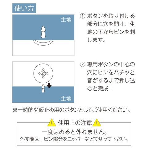 2.専用ボタンの中心の穴にピンをパチッと音がするまで押し込むと完成!