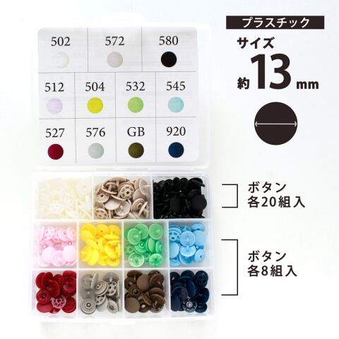 ◆生地にしっかり食込むタフなプラスチックスナップを常備にも便利なアソートセットにしました。