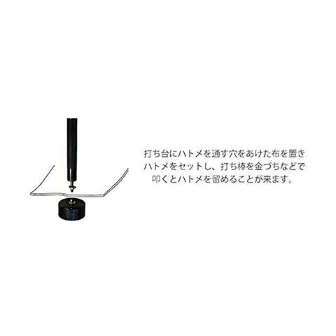 ◆打ち台にハトメを通す穴をあけた布を置きハトメをセットし、打ち棒を金づちなどで叩くとハトメを留めることが来ます。