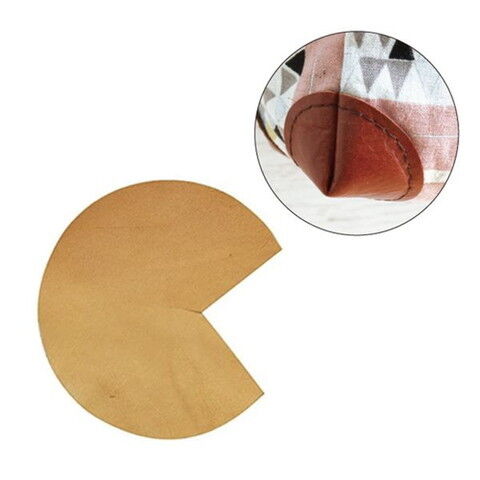 ◆布の表地に置き、革パーツを内側に入れ込んでから裏から縫ってください。