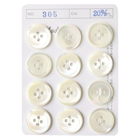 NBK シェルボタン (白・φ20mm) 1台紙(12個付) IGA305-20 【返品種別B】