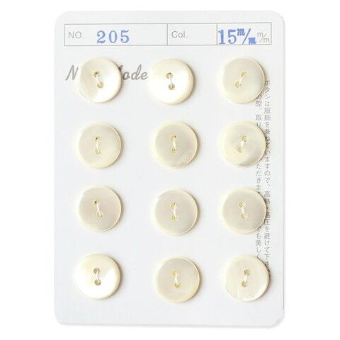 NBK シェルボタン (白・φ15mm) 1台紙(12個付) IGA205-15 【返品種別B】