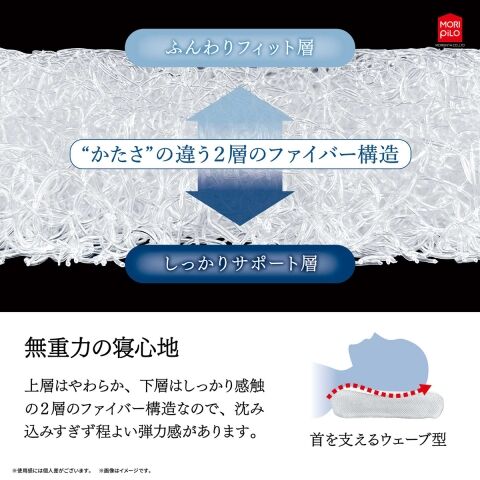 しっかりとした硬さとふんわりした柔らかさを両立。従来のファイバー枕であった硬すぎるという不満を解消する、硬すぎず、柔らかすぎない、ちょうどいい寝心地を実現したファイバー枕で、快適な睡眠を。