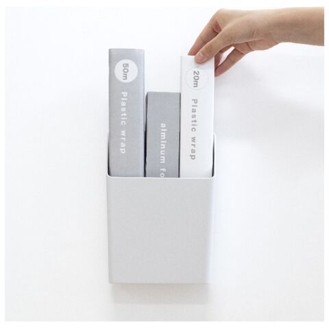 ◆マジックテープで貼り付けできるから好きな場所においておける便利なラップ収納。