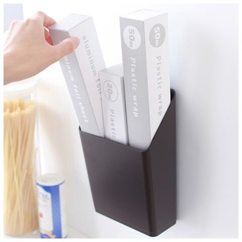 ◆マジックテープで貼り付けできるから好きな場所においておける便利なラップ収納。