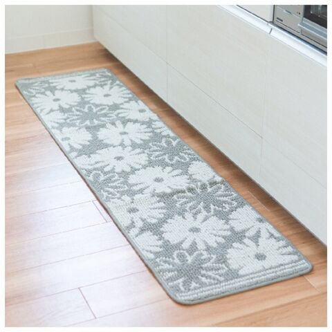 ◆女性らしい優しい雰囲気のあるデイジーの花モチーフのキッチンマット。