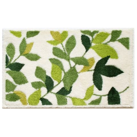 ◆ナチュラルで爽やかな植物柄を大胆に表現した日本製ウィルトン織りの洗える玄関マット「リーフグリーン」。