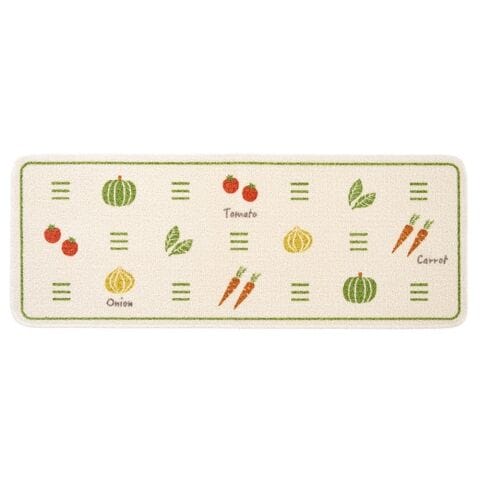 ◆まるで畑のようにきちんと並んだ野菜のデザインがほっこりできるキッチンマットです。