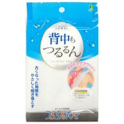 ◆ピーリングボディタオルは、背中も伸ばして楽に使えるようロングサイズの約17×100cmです。