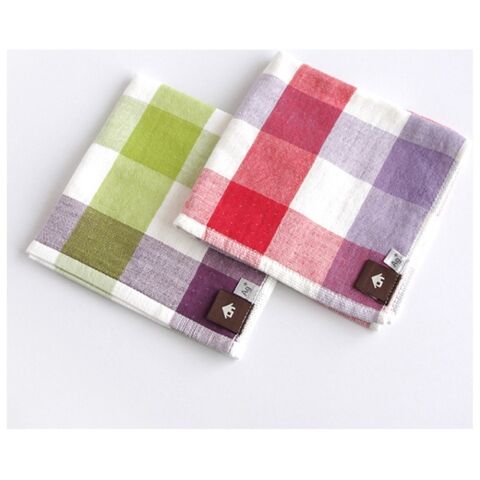 ◆チェックデザインのある表面はガーゼタイプ、裏面はタオル地のようなパイルになっている食卓用ふきん。