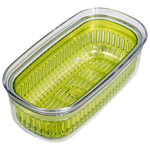 ◆野菜を保存できるフタ付きの水切りざる、Vegi mage (ベジマジ)「あらう」のスリムサイズ。