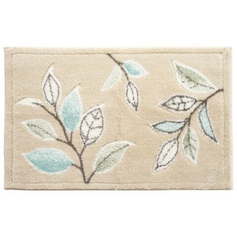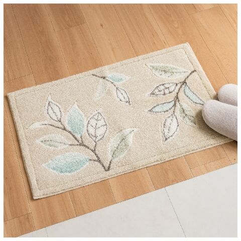 ◆優しい色合いとステッチ風に描かれた植物柄が、癒しを与えてくれる洗える玄関マット「ステッチリーフ」。