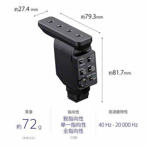 全長(約)79.3mmの非常にコンパクトなサイズながら鋭指向性を実現。