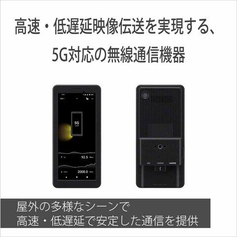 撮影から納品/配信までスピードが求められる撮影現場において、屋外のさまざまな撮影現場でも高速・低遅延で安定した通信を提供する、5G対応ポータブルデータトランスミッター。