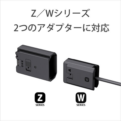 また、接続プレートをカメラのバッテリースロットに差し込むことで、NP-FZ100(Z)またはNP-FW50(W)バッテリーを使用するカメラに電源を供給できます。