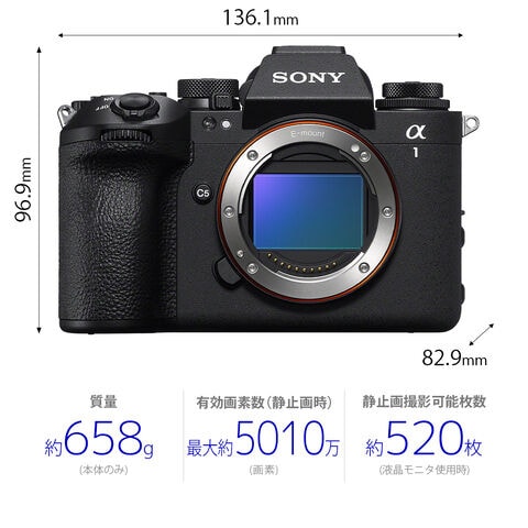 - 撮像素子:35mmフルサイズ (35.9 x 24.0mm)、Exmor RS CMOSセンサー