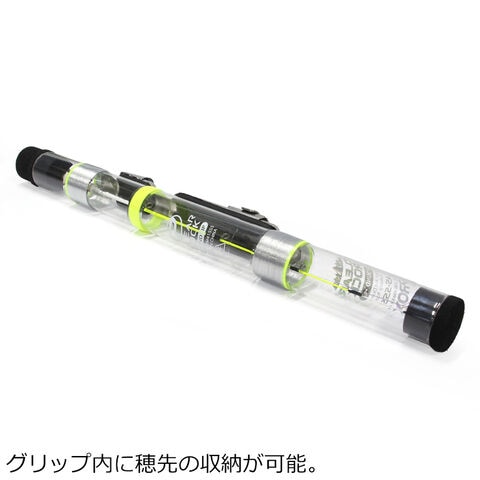 ◆使用時はグリップ内に収納した穂先を取り出し逆さに継ぐだけ。