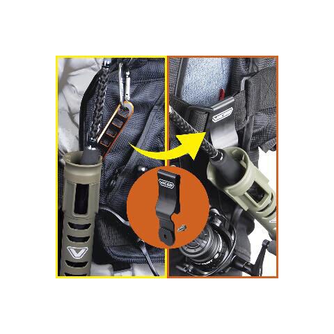 手持ちのターンロックロッドホルスターのフックハンガーを取り外し、ベルトクリップ単品をつけることでベルト取付け専用として使用可能。