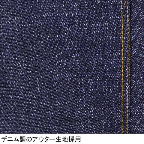 コットン混デニム調のアウター生地を採用したカジュアルなデザイン。